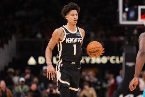 新鹰王就这?杰伦·约翰逊半场4中0得4分3板1助1断 正负值-15最低