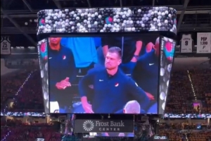 马刺VS开拓者赛前介绍环节 主场球迷给旧将斯普利特送上欢呼